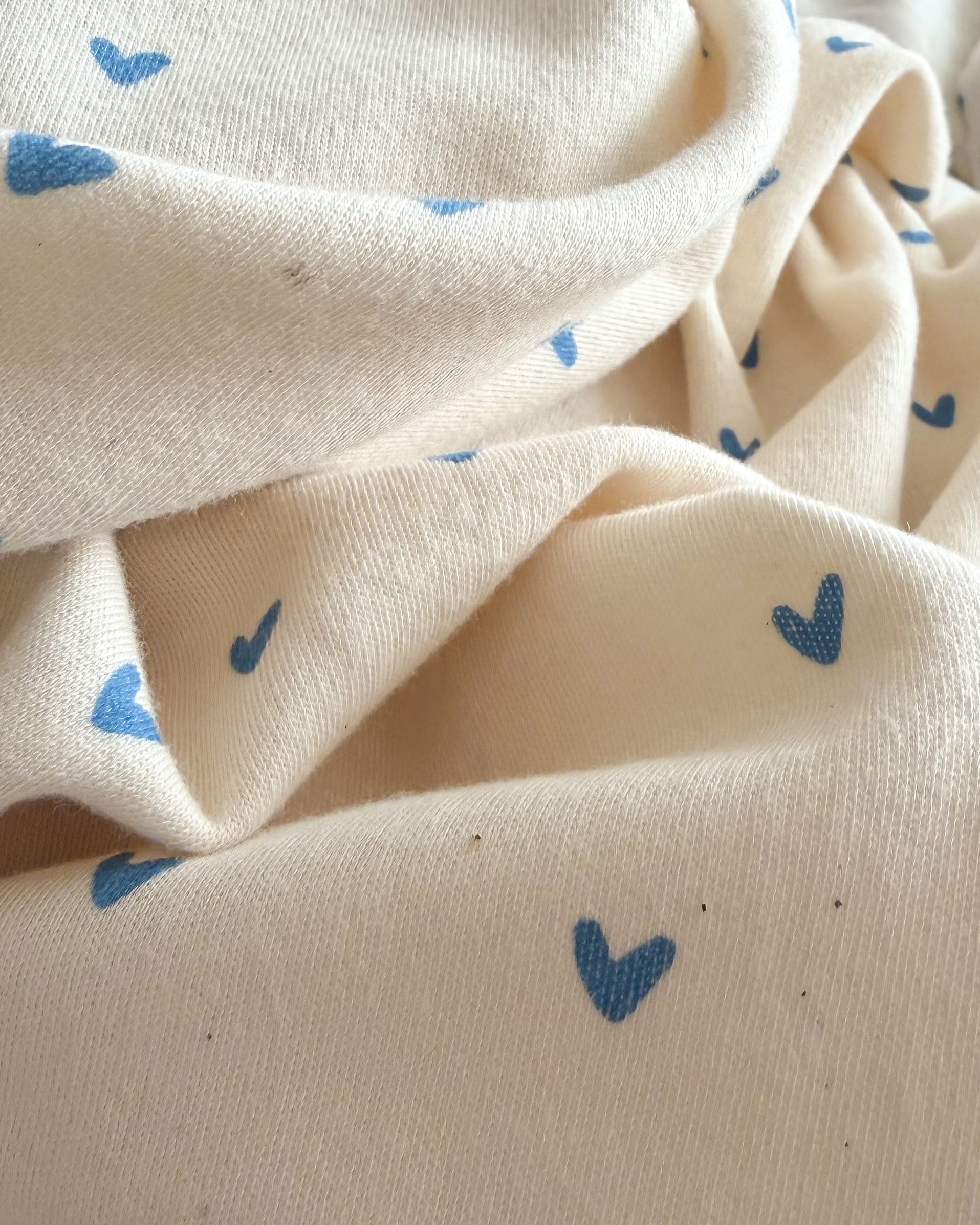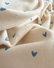 生成ベースの生地にハート柄のプリントです