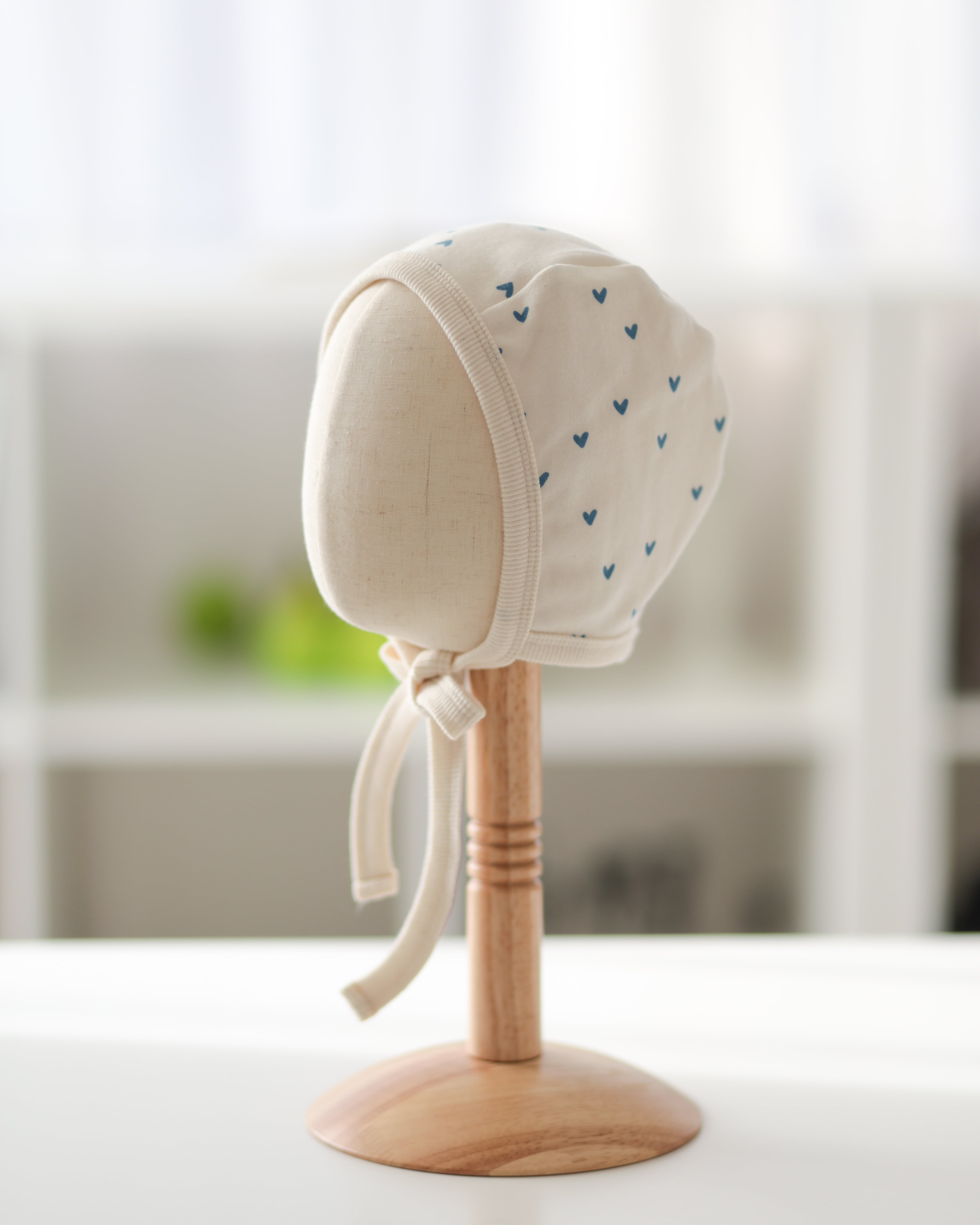 柔らかく肌触りのよいコットンニットのベビーボンネット